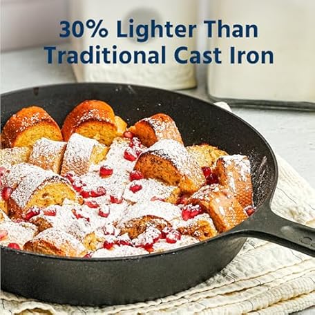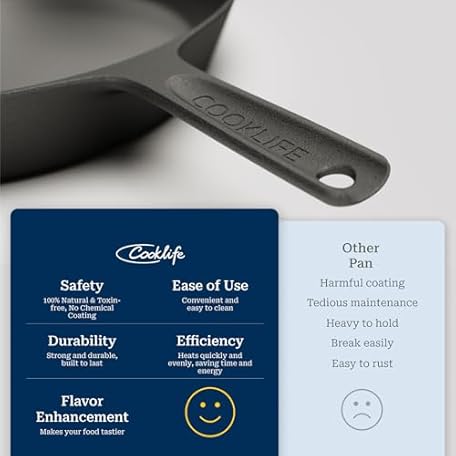 Thông tin sản phẩm COOKLIFE 10 Inch Lightweight Pre-Seasoned Cast Iron Skillets with Handle Cover - Smooth Polished Surface, Easy to Clean Cast Iron Pan Use in the Oven, on the Stove or Grill, Over a Campfire