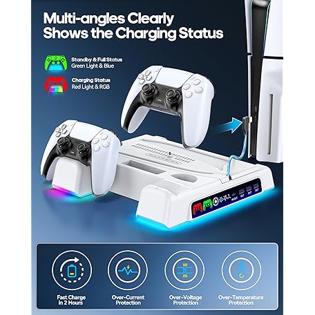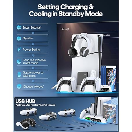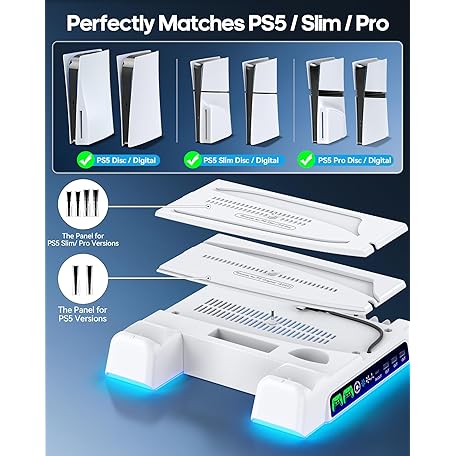 Thông tin sản phẩm Cooling Stand for PS5/ Slim/Pro Disc & Digital Console, PS5 Cooling Station with Dual Controller Charging Station for PlayStation 5 Console, 3-Level Cooling Fan & Controller Charger Dock Accessories