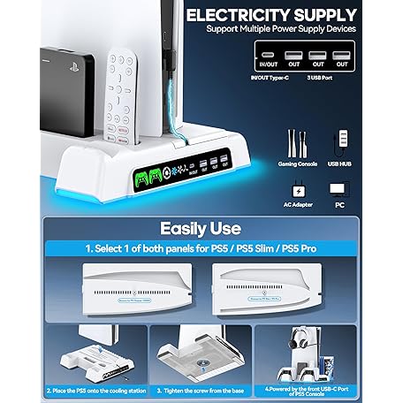 Sản phẩm Cooling Stand for PS5/ Slim/Pro Disc & Digital Console, PS5 Cooling Station with Dual Controller Charging Station for PlayStation 5 Console, 3-Level Cooling Fan & Controller Charger Dock Accessories đang được bán với giá ưu đãi là $29.2992 tại nước Mỹ.