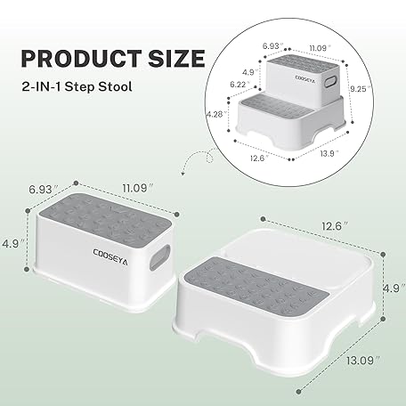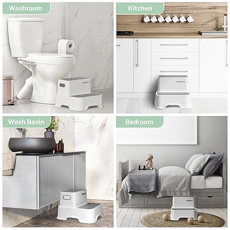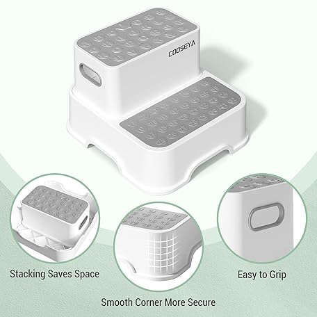 Thông tin sản phẩm COOSEYA 2 Step Stools for Kids,Toddler Step Stool for Bathroom Sink,No-Slip Double up Stepping for Toddlers Bathroom, Multifunctional Toilet Potty Stool for Kids,Toilet Potty Training(2 Packs)