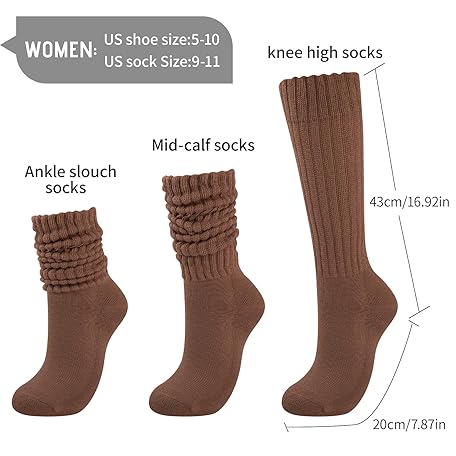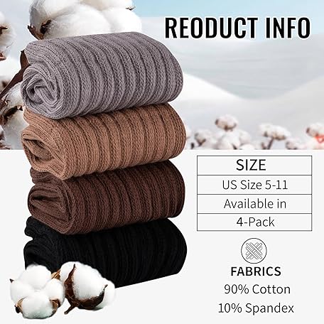 • COOVAN Slouch Socks Women 4 Pairs Knee High Scrunch Cotton Soft Knit Cushion Extra Long Socks