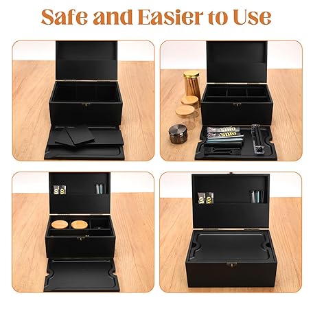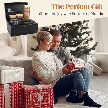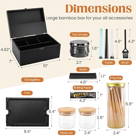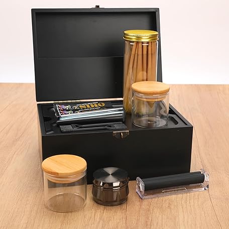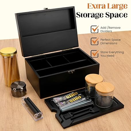 Coozyupper Large Bamboo Storage Box with Removable Tray Kit - Decorative Box Set, Glass Jars, and Accessories Wooden Storage Kit and Accessories Tool.Birthday Gifts.
