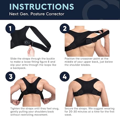 Thông tin sản phẩm Copper Compression Posture Corrector for Men & Women - Adjustable Copper Infused Orthopedic Brace for Pain Relief from Bad Posture, Slumping - Targets Upper Back, Shoulders, Neck, Clavicle