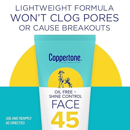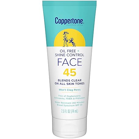 Thông tin sản phẩm Coppertone Oil Free + Shine Control Sunscreen Face Lotion SPF 45, Lightweight Sunscreen for All Skin Tones, Won't Clog Pores, Fragrance Free, 2.5 Fl Oz Tube