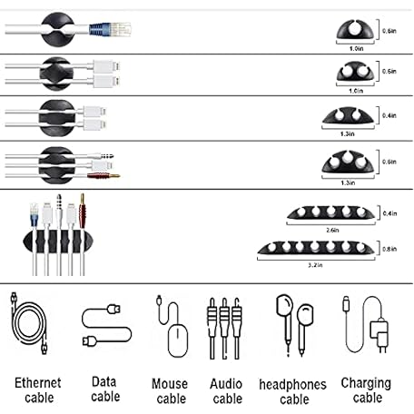 Thông tin sản phẩm Cord Management Organizer Kit 4 Cable Sleeve split with 41Self Adhesive Cable Clips Holder, 10pcs and 2 Roll Self Adhesive tie and 100 Fastening Cable Ties for TV Office Car Desk Home
