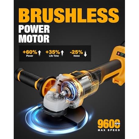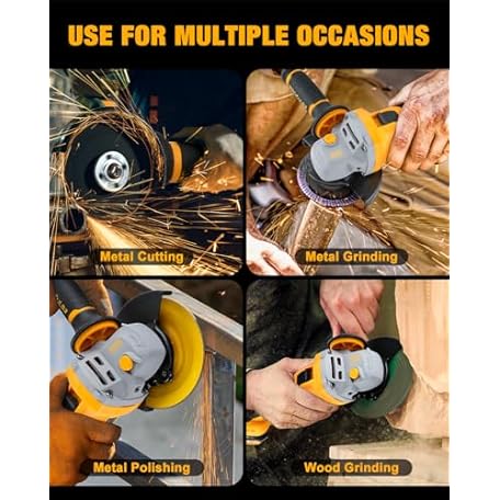 Thông tin sản phẩm Cordless Angle Grinder 4-1/2-Inch to 5-Inch,2x4.0 AH Battery Grinder Tool,9600 RPM Brushless Power Grinder,3 Variable Speeds Metal Grinder with Auxiliary Handle for Cutting,Grinding,Polishing