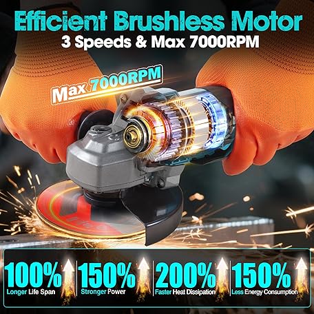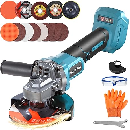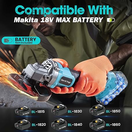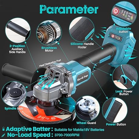 Cordless Angle Grinder Compatible with Makita 18V Battery (Not Included), Brushless motor, Lock-On Switch, 4-1/2" Blade, 3 Variable Speeds up to 7000 RPM, for Cutting, Grinding, Polishing