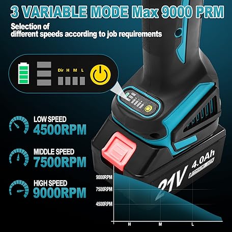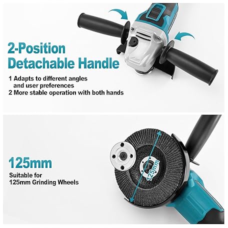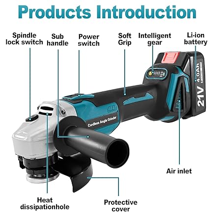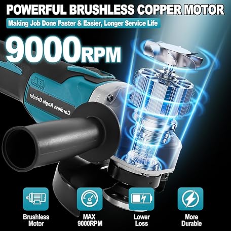 Cordless Angle Grinder for Makita 18V 21V Battery, 2x 4.0Ah Battery & Charger Power Grinder Tool 9000RPM 3 Variable Speeds Brushless Metal Grinder for Cutting Grinding Polishing
