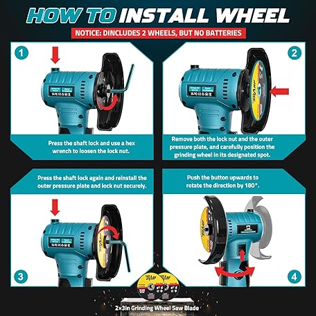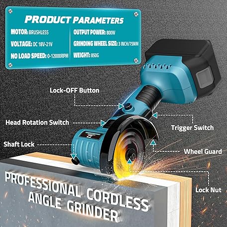 Cordless Angle Grinder for Makita 18v Battery: 3 Inch Cutting Off Tool with 2 Grinding Wheels - Variable Speed 12000RPM for Cutting Grinding Polishing- Adjustable Auxiliary Handle - Tool Only