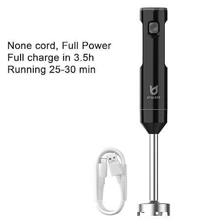 Thông tin sản phẩm Cordless Hand Blender, UTALENT Variable Speed Immersion Blender Rechargeable, with 500ml Chopper, 600ml container, Egg Whisk, for Smoothies, Baby Food and Soups – Black