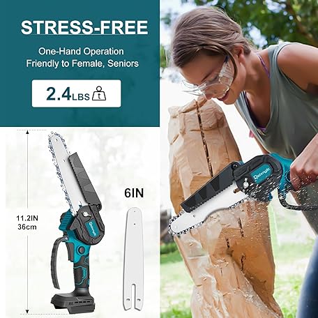 Thông tin sản phẩm Cordless Mini Chainsaw 6 Inch for Makita 18V LXT (No Battery), Brushless Portable Electric Chain Saw Tool for Makita BL1850, Small Handheld Chainsaw for Pruning Shear Branch Wood Cutting Tree Trimming