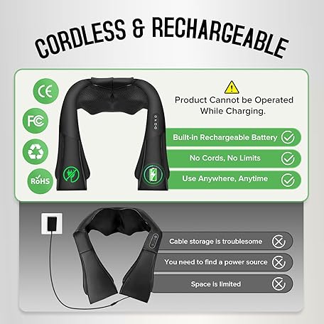 Thông tin sản phẩm Cordless Shiatsu Neck and Shoulder Massager, Back Massager with Heat,Massage Deeper Tissue 4D Kneading Massage for Shoulder, Neck and Back, Use at Home, Office, Car - Gifts for Fathers Day Dad Gift