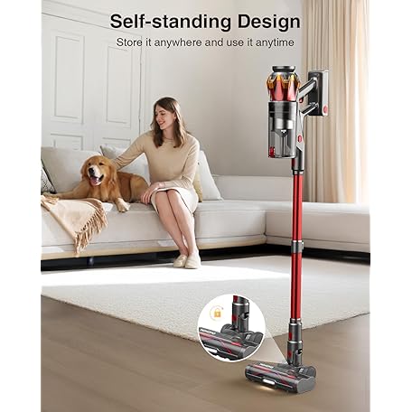 Thông tin sản phẩm Cordless Vacuum Cleaner, 650W 55KPa 70Mins Vacuum Cleaners for Home, Self-Standing Stick Vacuum with Anti-Tangle Brush & OLED Touch Screen, Vacuum Cleaner for Hardwood Floors,Carpet,Pet Hair,Car (Red)