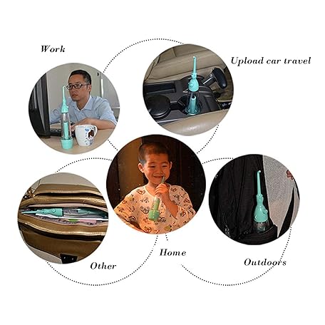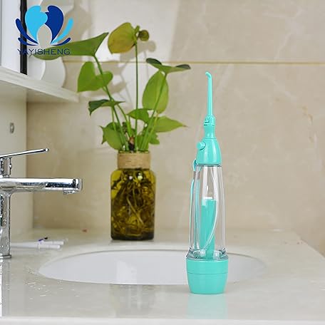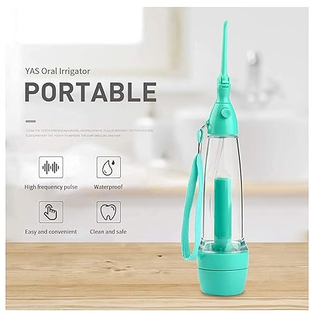 Cordless Water Dental Flosser Non-Electric Portable, Manual Air Pressure Simple Operation, Bottle Strengthening Dental Oral Irrigator for Home & Travel, Green.