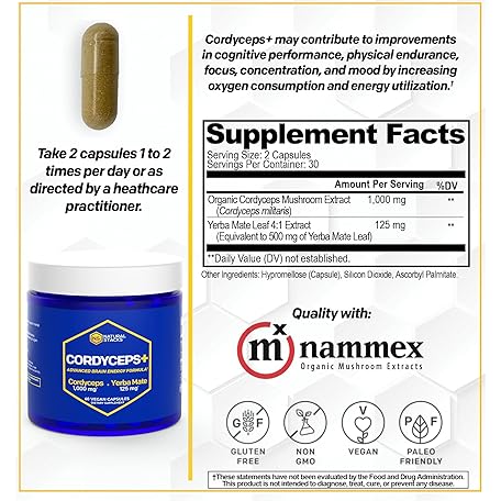 Sản phẩm Cordyceps Mushroom Capsules - 1000mg Cordyceps Extract & 125mg Yerba Mate Extract - 100% Fruiting Body Mushroom Supplement - Supports Brain Energy & Cognitive Performance - 60 Yerba Mate Capsules đang được bán với giá ưu đãi là $21.0915 tại nước Mỹ.