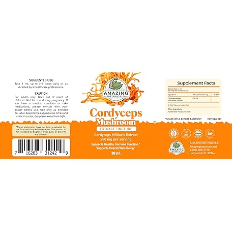 • Cordyceps Mushroom Extract Tincture – 250mg per Serving – Dual Extract Liquid Supplement – Energy & Endurance Support – Vegan, Non-GMO, USA Made, Sugar & Alcohol-Free Drops – 1oz bottle, 30mL