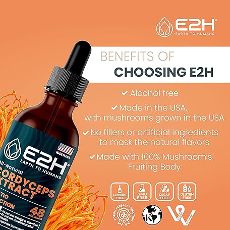 Thương hiệu E2H EARTH TO HUMANS là cái tên nổi tiếng được rất nhiều khách hàng trên thế giới chọn lựa. Với kiểu dáng đẹp mắt, sang trọng, sản phẩm Cordyceps Mushroom Supplement - Faster Absorption Than Cordyceps Mushroom Capsules or Powder - Our Cordyceps Extract Promotes Energy & Stamina Support - Mushroom Extract - 2 Fl Oz by E2H là sự lựa chọn hoàn hảo nếu bạn đang tìm mua một món cho riêng mình.