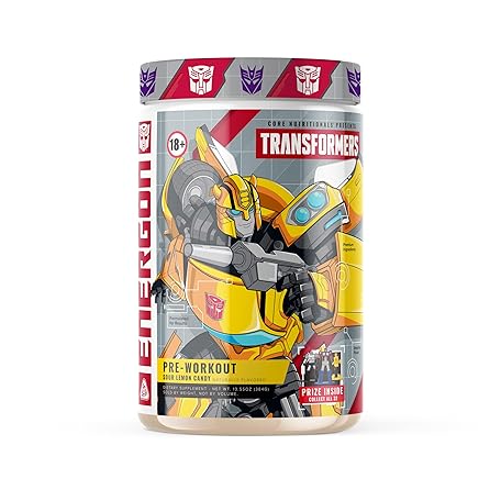 Core Nutritionals Transformers Energon Pre Workout | 300mg Paraxanthine | No Crash Energy & Focus | Free Prize Inside - Bumblebee | 20 Servings (Sour Lemon Candy)