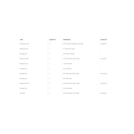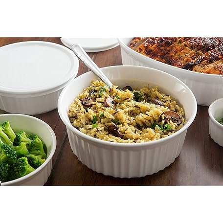 Thông tin sản phẩm CorningWare French White 12-Pc Ceramic Bakeware Set with Lids Chip and Crack Resistant Stoneware Baking Dish, Microwave, Dishwasher, Oven, Freezer and Fridge Safe