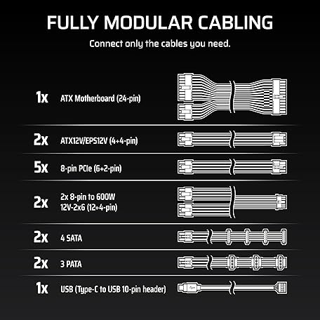 CORSAIR HX1200i (2025) Fully Modular Ultra-Low Noise ATX Power Supply with 12V-2x6 Cable – ATX 3.1 & PCIe 5.1 Compliant, Cybenetics Platinum Efficiency, Fluid Dynamic Bearing Fan – Black