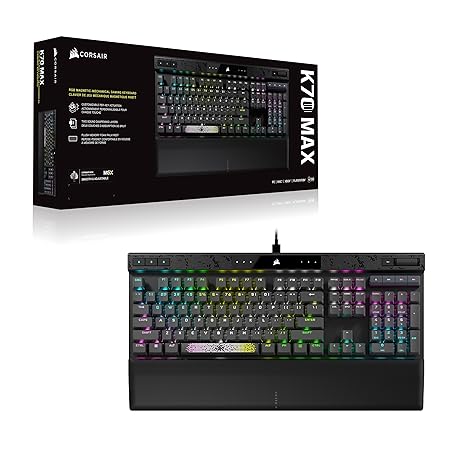 Sản phẩm CORSAIR K70 MAX RGB Magnetic Mechanical Wired Gaming Keyboard – MGX Adjustable Switches, Simultaneous SOCD and Rapid Trigger, PBT Double-Shot Keycaps, Sound Dampening, 8000Hz Polling, QWERTY NA, Black đang được bán với giá ưu đãi là $179.8391 tại nước Mỹ.