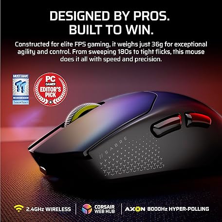 Thông tin sản phẩm Corsair Sabre v2 PRO Ultralight FPS Wireless Gaming Mouse – 33,000 DPI, 36g Weight, 8,000Hz Hyper-Polling, Mechanical Switches, Up to 70-Hour Wireless Battery Life, Web Hub – Black