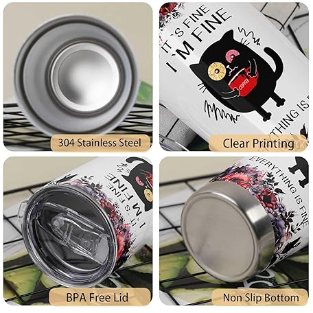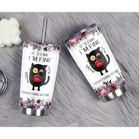 Sản phẩm Cosictic Cat Lover Gifts Tumbler, I'm Fine Everyhing Is Fine 20 Oz Funny Black Cat Tumbler Coffee Cup đang được bán với giá ưu đãi là $16.9059 tại nước Mỹ.