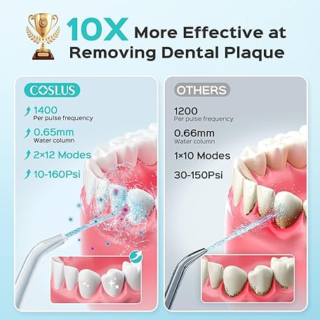 Sản phẩm COSLUS Advanced Water Flosser for Teeth: 2 Modes & 12 Pressure Settings Electric Dental Pick for Orthodontic, Braces, Sensitive Gums - Home Use, 5 Jet Tips for Multiple Users, Family, White, E2 đang được bán với giá ưu đãi là $43.5782 tại nước Mỹ.