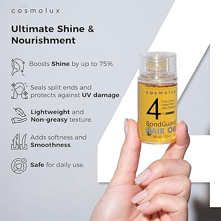 Thông tin sản phẩm Cosmolux BondGuard Bonding Oil, Heat Protectant & Repair Oil for Damaged, Color-Treated & Frizzy Hair, Adds Shine & Tames Frizz, Lightweight & Vegan - 1.7 fl oz (50 mL)