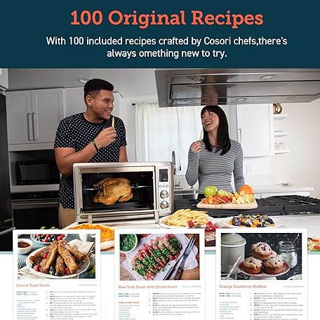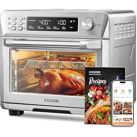 Thông tin sản phẩm COSORI 12-in-1 Air Fryer Toaster Oven Combo, Airfryer Rotisserie Convection Oven Countertop, Bake, Broil, Roast, Dehydrate, 134 Recipes & 4 Accessories, 32QT, Silver, Stainless Steel