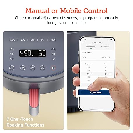 Thông tin sản phẩm COSORI Air Fryer 4 Qt, 7 Cooking Functions Airfryer, 150+ Recipes on Free App, 97% less fat Freidora de Aire, Dishwasher-safe, Designed for 1-3 People, Lite 4.0-Quart, Smart, Truffle Gray
