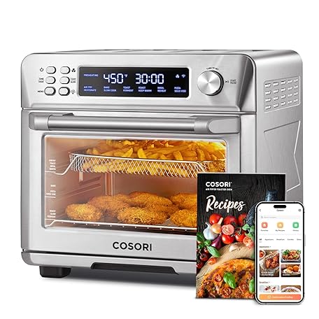 Thông tin sản phẩm COSORI Smart 12-in-1 Air Fryer Toaster Oven Combo, Airfryer Convection Oven Countertop, Bake, Roast, Reheat, Broiler, Dehydrate, 75 Recipes & 3 Accessories, 26QT, Silver-Stainless Steel