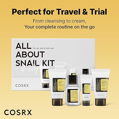 Thông tin sản phẩm COSRX All About Snail Mucin Korean Skin Care Set, Mini Travel Essentials, Travel Size Gift Set with Snail Mucin Face Wash, Serum, Moisturizer & Eye Cream, Rejuvenating Kit, Stocking Stuffers