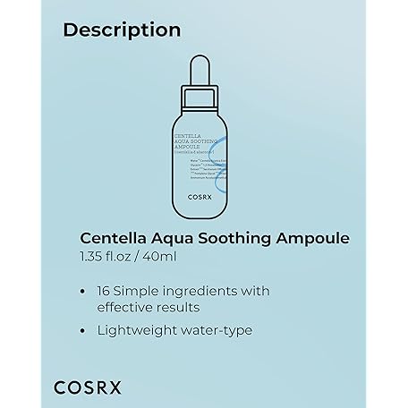 Thông tin sản phẩm COSRX Centella Aqua Soothing Ampoule, Centella Asiatica Cica Serum, Korean Skin Care, 1.35 Fl oZ, For Sensitive Skin, Daily Skin Serum, Paraben Free, No Animal Testing