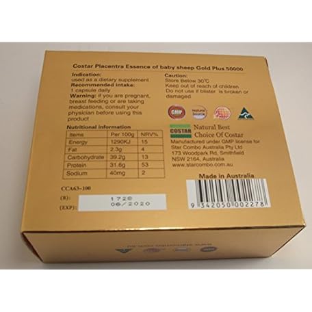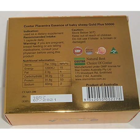 Sản phẩm Costar Sheep Placenta Extract High Strengh Gold Plus 50000mg Baby Sheep Essence 100 Capsules Australian Made đang được bán với giá ưu đãi là $76.2891 tại nước Mỹ.