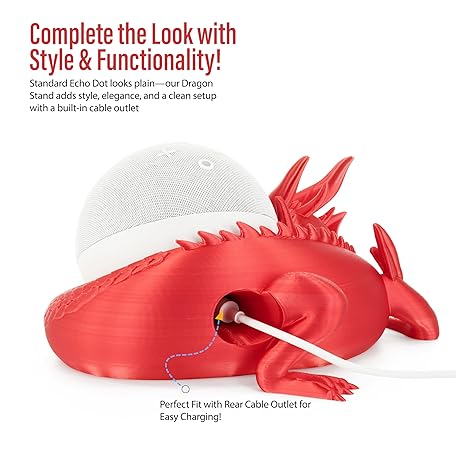 Costume Wizard Dragon Stand for Echo Dot 4th/5th Gen, 3D Printed Dragon Amazon Echo Desktop Speakers, Holder for Echo Dot 5th Gen Echo Dot 4th Gen, Made in USA (Red)