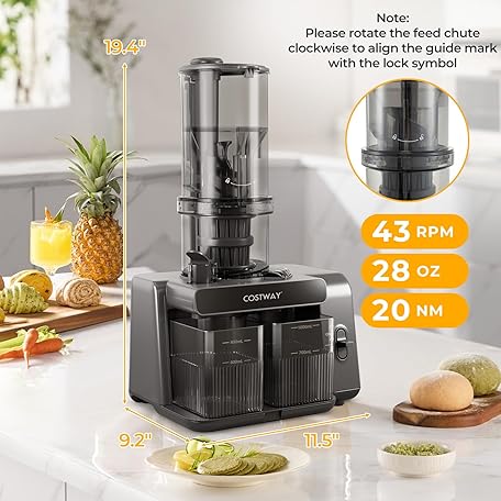 COSTWAY Cold Press Juicer, Slow Juice Extractor Machine with 5.3” Feed Chute, High Juice Yield and Reverse Function, Easy to Clean with Brush, BPA-Free, Masticating Juicer for Whole Fruits Vegetables