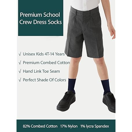 • COTTON DAY Unisex Little Kids Youth Boys Girls Soft Cotton Crew Dress Socks Seamless Toe Black White Gray Navy 6 Pack