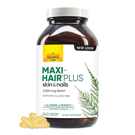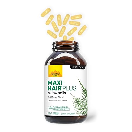 Thông tin sản phẩm Country Life, Maxi-Hair Plus Biotin, Supports Healthy Hair, Skin and Nails, Daily Supplement, 240 ct