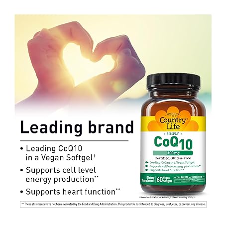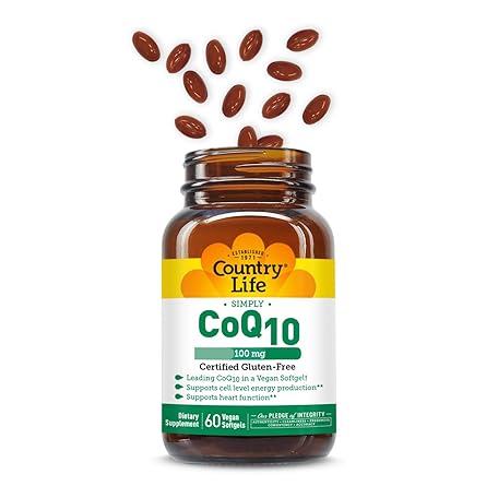 Thông tin sản phẩm Country Life Simply CoQ10 100mg – Heart Function & Cellular Energy Support Supplement, Pure Coenzyme Q10 for Antioxidant & Cardiovascular Health, Certified Gluten Free & Vegan, 60 Softgels