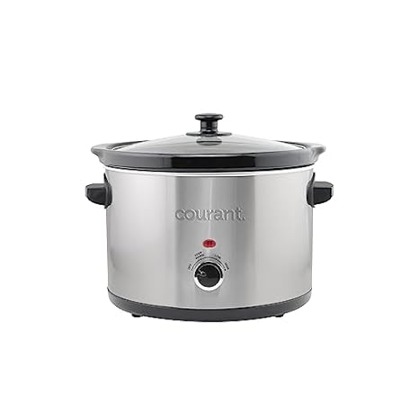 Courant Slow Cooker 5.5 Quart Crock, with Easy Cooking Options, Dishwasher Safe Pot and Glass Lid, Stainless Steel