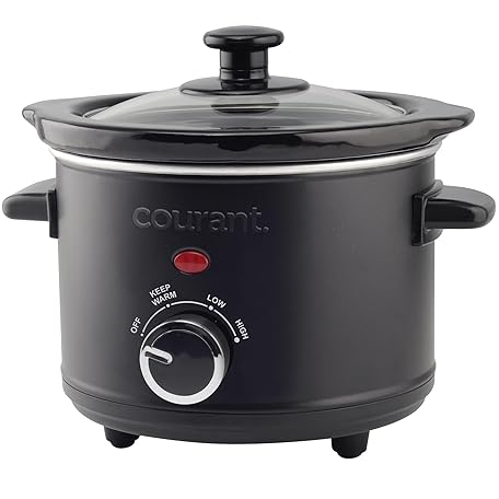 Courant Small Slow Cooker 1.6 QT, 3 Heat Settings, Removable Ceramic Pot" Easy Clean, Dishwasher Safe, Mini Slow Cooker, Black Stainless