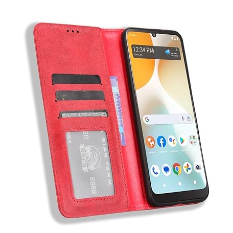 • Cover Compatible with Rakuten Hand/Hand 5G Case PU Leather Flip Kickstand Wallet Card Slot Magnetic Closure Red