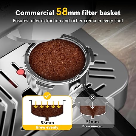 Thông tin sản phẩm COWSAR 58mm Espresso Machine 20 Bar, Stainless Steel Coffee Maker with Milk Frother, 50 oz Removable Water Tank, LED Display, for Home Espresso, Latte & Cappuccino, Silver
