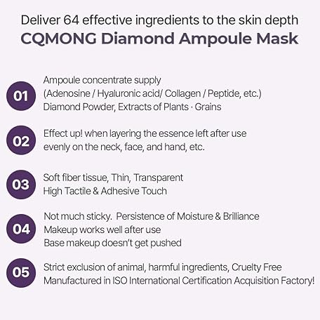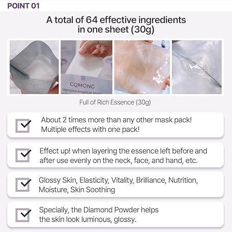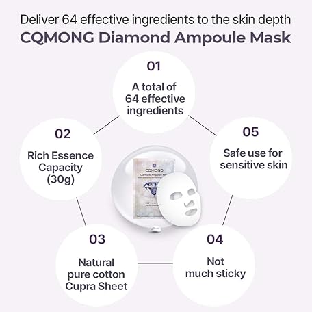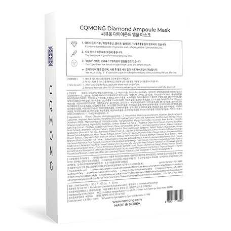 Thông tin sản phẩm CQMONG Diamond Ampoule Sheet Mask (30g x 10pcs), Korean Face Facial Masks, Glossy & Elastic Skin, Hydrating, Soothing, Nourishing, Collagen & Hyaluronic Acid, Smooth Sheet