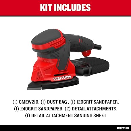 Thông tin sản phẩm CRAFTSMAN Detail Sander, Corded Mouse Sander for Woodworking, Includes 2 Attachments, Sandpaper Sheets and Dust Bag (CMEW210)