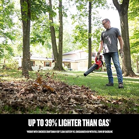 CRAFTSMAN Leaf Blower Cordless with Battery and Charger V20 RP, Up to 110 MPH Power, Handheld Electric Leaf Blower, Brushless Motor, Lightweight, 5.0Ah (CMCBL730P1)