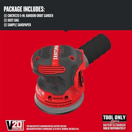 Thông tin sản phẩm CRAFTSMAN V20 Orbital Sander, Cordless, 12,000 OPM, Bare Tool Only (CMCW220B)