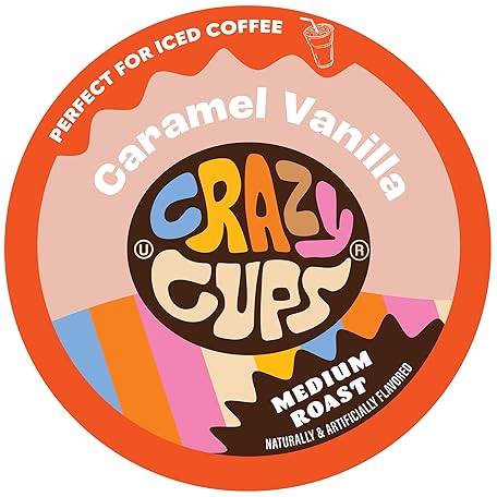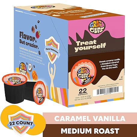 • Crazy Cups Flavored Coffee Pods, Caramel Vanilla, Single Serve for Keurig K Cups Machines, Medium Roast in Recyclable Pods(Pack of 1, 22 Count Total)