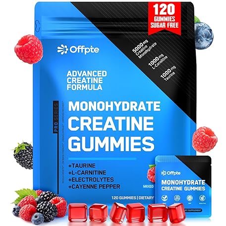 Creatine Monohydrate Gummies 8000mg for Women & Men,5g Creatine with Taurine,L-Carnitine,Electrolytes,Cayenne Pepper for Energy, Muscle & Focus | Vegan, Sugar Free,120 Gummies Blue